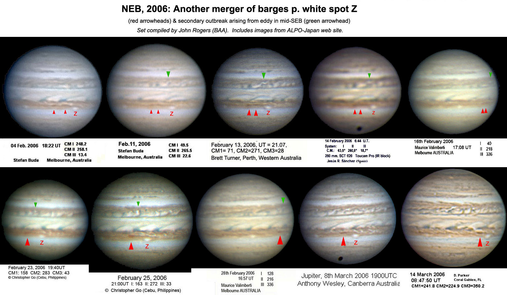 have already observed 3 barge mergers preceding white spot Z, from 2001 to 2005,