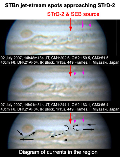 the recirculation of the first two SEB(S) spots at the South Tropical