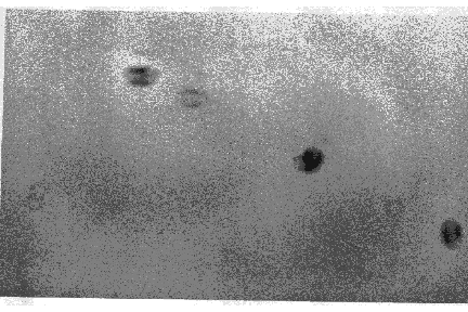 Every optical surface which lies in front of your CCD chip can at some stage have dust land on it and stick to it. Every speck of dust which sits on each of these optical surfaces acts like a pinhole camera and casts an image, a shadow, of the entrance pupil of the telescope. It makes no difference whether the optical surface is a filter or a window to protect the CCD chip itself, the effect will be the same. The size of the shadow cast by each speck of dust will depend upon the f/ ratio of the telescope and the distance of the surface from the CCD. The faster the f/ ratio for a given distance the larger will be the shadow. The greater the distance for a given f/ ratio the larger will be the shadow. The larger and more opaque the speck of dust the more dense will be the shadow. You might think that you do not have this effect as your surfaces are spotlessly clean. Try this test. Take a flat field exposure, timing the exposure so that the majority of the pixels are as near as possible to being saturated without actually being saturated. Check this by inspecting the histogram of the pixel count against signal which comes as part of the control software for almost every CCD system. Now enhance the contrast to the maximum amount possible by selecting the most heavily exposed part of the histogram and expanding it so that it covers the full range of eight bits, or whatever your system is capable of displaying. Do you still believe that there is no dust in your system? It is possible that if you have just bought a new system, or just cleaned your old one, that your surfaces are truly clean. They are unlikely to stay that way. Below we show an image taken from the monitor showing this effect on a 10" f/10 Schmidt-Cassegrain telescope.