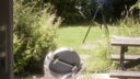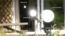 A couple of photos of my “50 foot” solar telescope. One looking out at the 4 inch, very long focus mirror(!), and the other looking back towards the house where the solar image falls on the wall in a darkened room for ease of viewing.