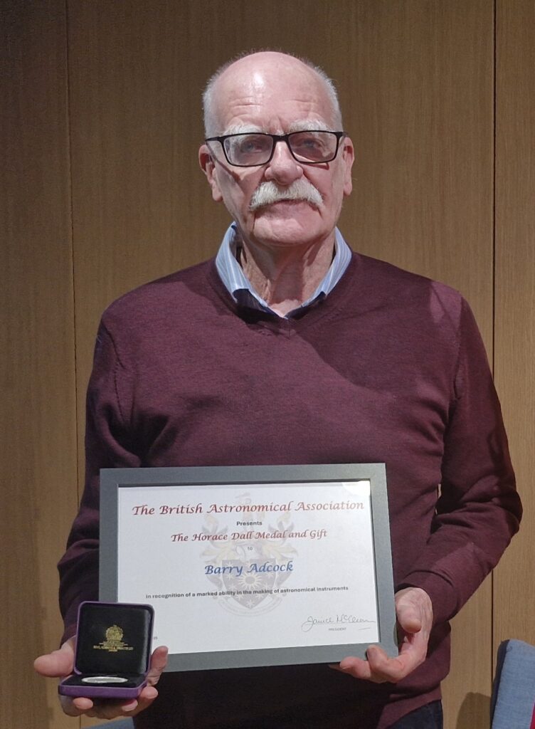 Barry S. Adcock is a long-time BAA member, Honorary Life Member of the Astronomical Society of Victoria Inc (Australia); formerly ASV Curator, Melbourne Observatory; Honorary Associate, Museums Victoria in connection with the Great Melbourne Telescope Reconstruction Project 2008-present; Honorary Life Member Ballaarat Astronomical Society, former Curator Telescopes Ballarat Municipal Observatory.