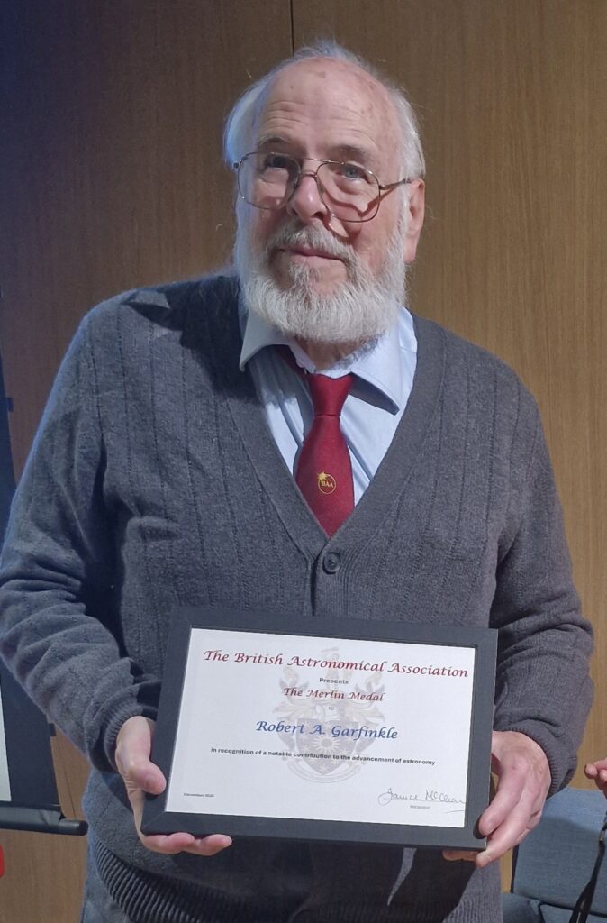 Robert A. Garfinkle is a well-known American amateur astronomer who has long been a member of the BAA and the historical advisor for our Lunar Section. He is recognised internationally as an independent scholar on the history of astronomy and has published astronomy history articles over the last 40 years in various national and international journals and magazines. Since 2004 he has been the Book Review Editor of the Journal of the Association of Lunar and Planetary Observers. As well as being the historian for the BAA Lunar Section, he is also a longtime member of the Antique Telescope Society, the East Bay Astronomical Society, the San Jose Astronomical Association, The Fremont Peak Observatory Association, and the Society for the History of Astronomy. In 1998, he was elected a Fellow of the Royal Astronomical Society. In 2018 the International Astronomical Union renamed Minor Planet 2000 EY70 as 31862 Garfinkle in his honour.