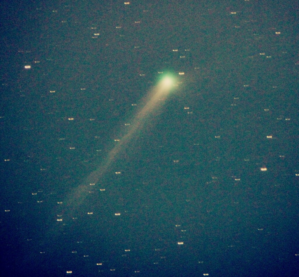 Comet Wierzchos (C/2024 E1) from last night (2026 Jan 29 09hrs UT). 11cm f7 Stellarvue refractor + 1500D DSLR, 1600iso, 20 x 20 sec. No calibration sorry. N=up, E=right. FoV=~1x1 degree. Low in SW sky (New Zealand). Bright Moon (10.5 days old |