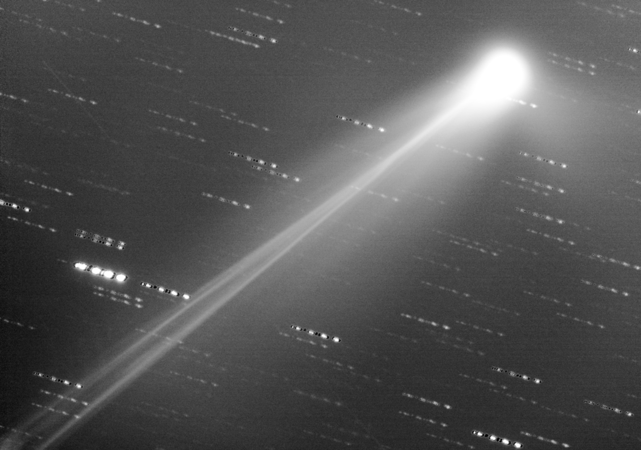 C/2024 E1 (Wierzchos) tonight (2026 Feb 06.38 UT) from New Zealand. 35cm f10 Meade ACF SCT + ZWO-6200M CMOS. About 40 x 30 sec, 2x2 bin. N=up, E=left. FoV=~30'x20'. Lingering twilight. Low in SW (~22-degree altitude). I also did a visual observation, below... C/2024 E1 (Wierzchos) 2026 Feb 06.38 UT: m1 = 6.8, Dia.= 2.5', DC = 4, 41cm f4.5 Reflect (59x)… John Drummond, (Gisborne, New Zealand) [Can quite easily see C/2025 R2 (SWAN) with the 41cm f5.2 reflector and 31mm eyepiece, but not with the naked eye. It's in Phoenix. The coma is slightly more condensed in the centre. 45' tail in PA 125*. Comparison stars used - TYC 8016 768 (mag 6.8 ) and TYC 8016 1177 (mag 6.3) - in-out method. 22° alt in the southwest. Astro twilight evident. Stellar LM = 4.5 near comet (naked eye), rural sky]. |