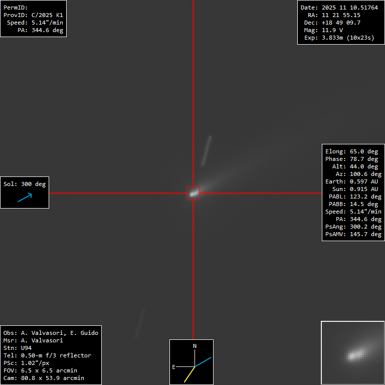 in my last image at 2025/11/10 UT12:22, I confirm that two nuclei of the comet are visible. Attached image acquired with iTelescope T26 from Utha (MPC U94).