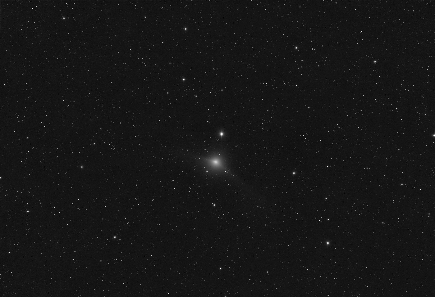 -Comet: C/2025 R2 Swan (Luminance) -Date/Time Local: 11/10/25 6:50pm MST -Date/Time UT: 11/11/25 1:50 UT -FOV: 200' x 134' -Orientation: N up -Seeing: 10 -Transparency:6 -Orig. Scale: 1.2 arcsec/Pixel -Instrument: RASA 11 f/2.2 -Exposure: 30 min total -Camera: ASI6200MM + UV/IR -Location: Happy Jack,AZ The anti-tail is showing up rather well here, this is just the luminance data with our monochrome camera. |