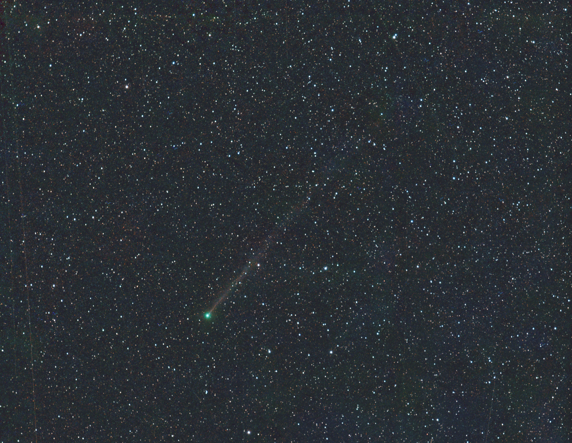 C/2025 R3 PANSTARRS 2026-03-23 3.35 UT 12x90sec Leica-Apo f-280mm/4.0 Nikon Z6mod Michael Jäger, Gerald Rhemann Center (RA, Dec): (337.695, 19.875) Center (RA, hms): 22h 30m 46.888s Center (Dec, dms): +19° 52' 28.370" Size: 5.16 x 4 deg Radius: 3.265 deg Pixel scale: 9.34 arcsec/pixel "Orientation", may be incorrect, use at your own risk: Up is 90.1 degrees E of N |