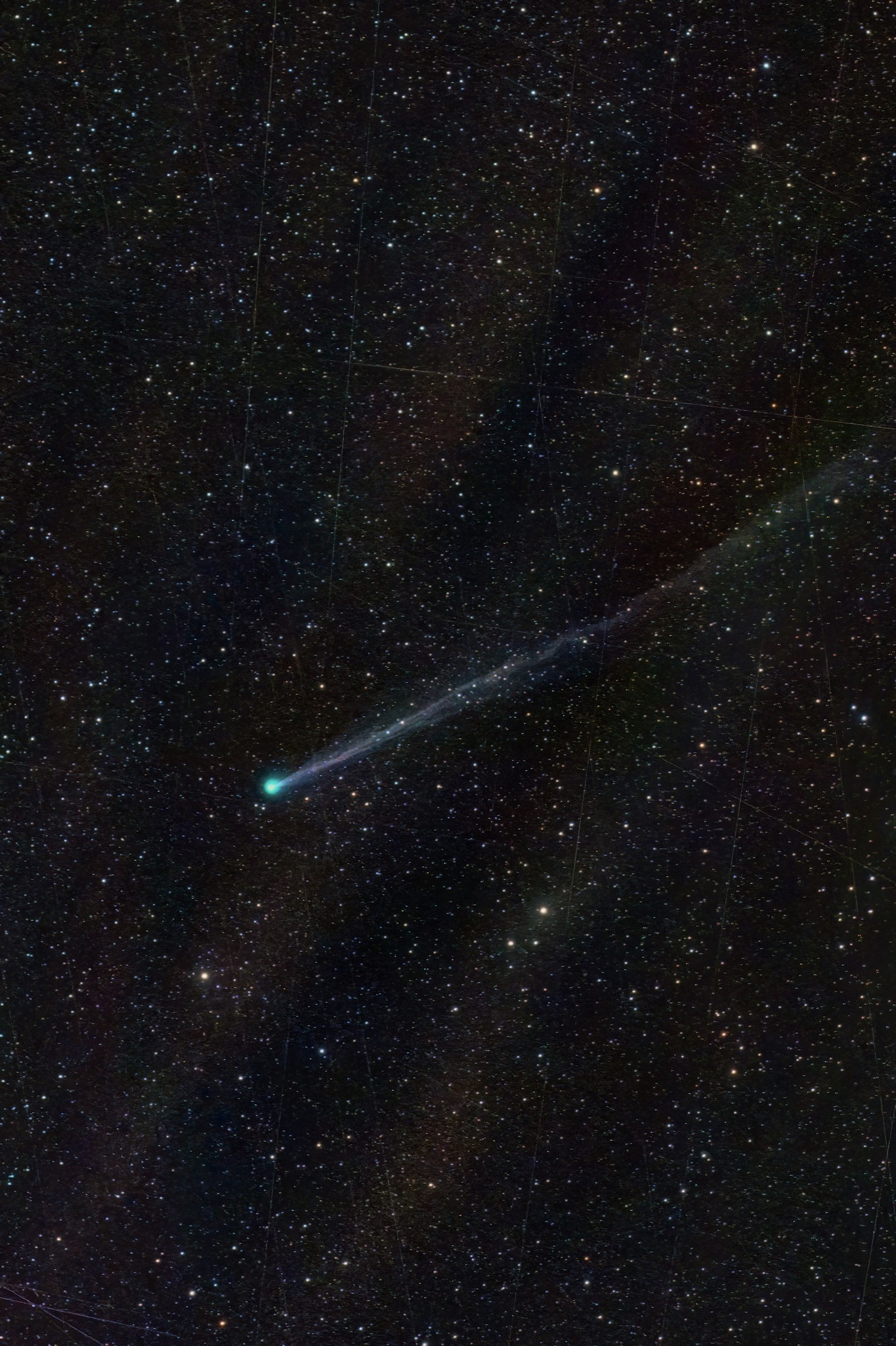 comet C/2025 R3 Panstarrs, today 04/04/2026 through veils, dawn lights and too many satellites... from New Mexico USA (telescopenetwork) apo 70/350 cmos ASI2400MC L=8x180s field 190'x290'