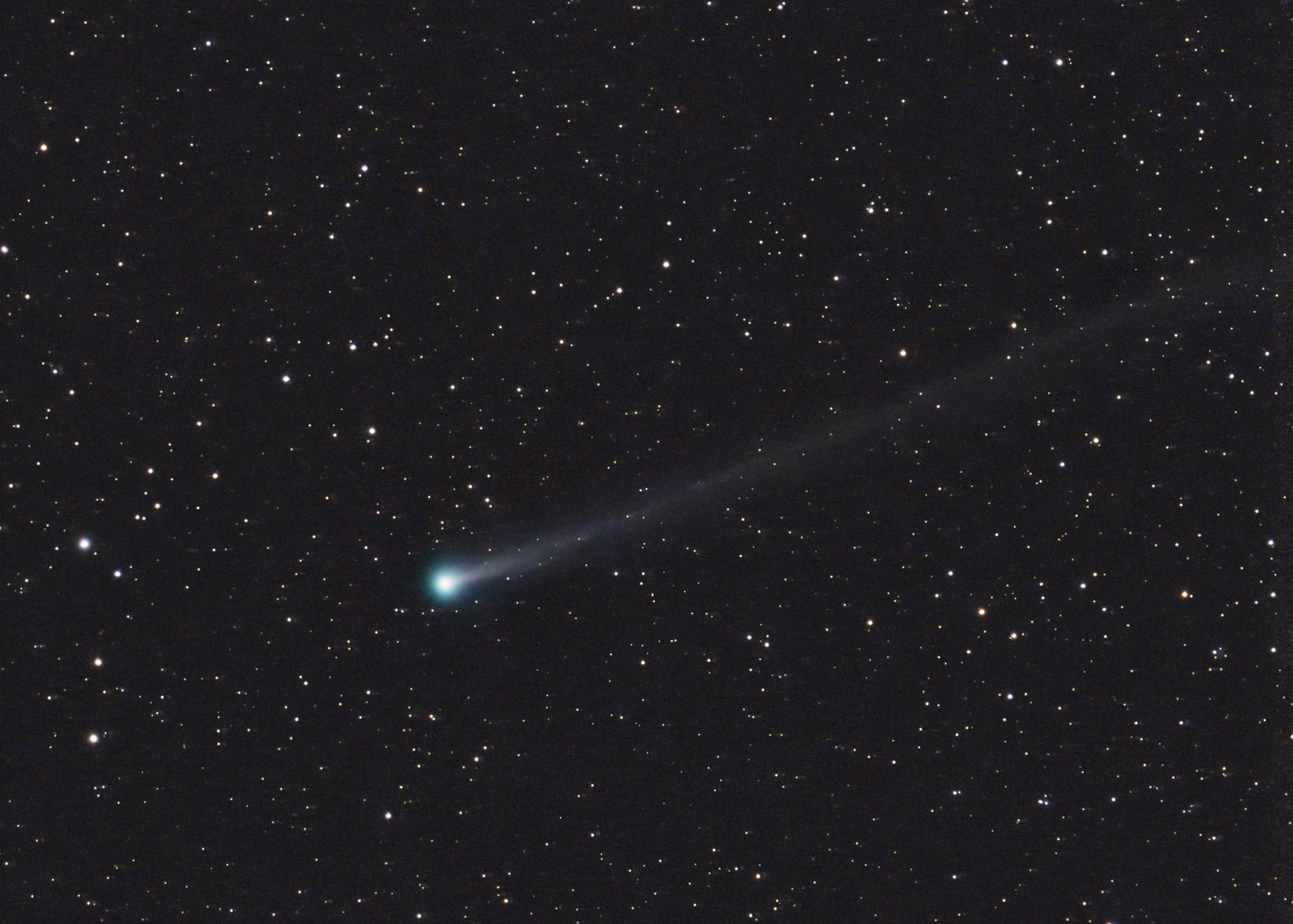 -Comet: C2025 Panstarrs R3 -Date/Time Local: 3/27/26 4:45 am MST -Date/Time UT: 3/27/26 11:45 UT -FOV: 2 x 1.4 -Scale: 4.4 arcsec/pixel (resized value) -Seeing: 4 -Transparency: 4 -Instrument: Sigma 150mm f/4 Macro -Exposure: 37 min total -Camera: ASI585MC -Location: Payson, AZ Low signal to noise in moonlight for sure. Tail shows a smooth structure except near the head there is one adjacent ray seen. |