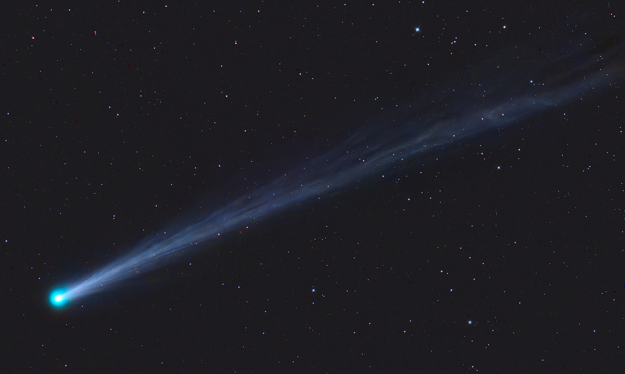 C/2025 R3 (PanSTARRS) 2026.04.15 3.00 UT, Luminance with 4" / 4.1 Skywatcher Esprit Refractor and Touptek 2600 MP 5 x 60 s. RGB with Takahashi Epsilon 130 D and Canon Ra 8 x 60 s. Center (RA, Dec): (352.706, 19.245) Center (RA, hms): 23h 30m 49.402s Center (Dec, dms): +19° 14' 41.697" Size: 2.83 x 1.69 deg Radius: 1.648 deg Pixel scale: 4.97 arcsec/pixel "Orientation", may be incorrect, use at your own risk: Up is 8.3 degrees E of N |