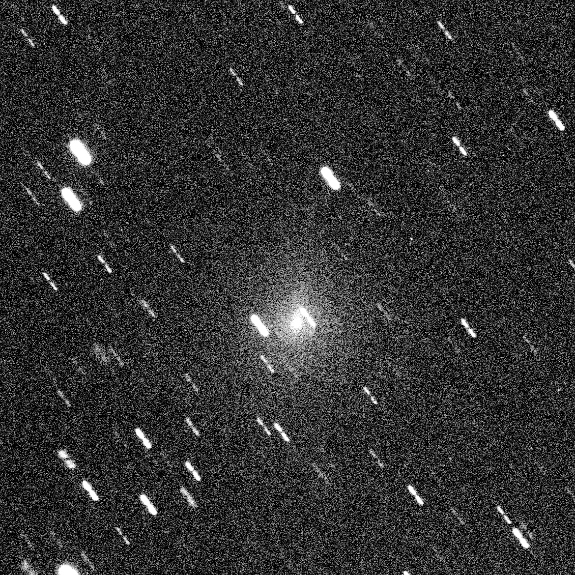 Comet C/2026 A1 (MAPS) - Feb 15.43, 2026 : This is a 4x120exposure taken using the 43cm f6.8 T32 scope at Siding Spring. The view is cropped to 10x10' with north approximately to the right. Measurements in Tycho Tracker place the coma at 3.0' diameter and m1=14.1,with a short stubby tail extending 1.6' in roughly PA84. The comet is showing steady but rapid brightening, with my previous estimates being m1 = 14.4 from 13th Feb, m1=14.7 from the 10th Feb. |