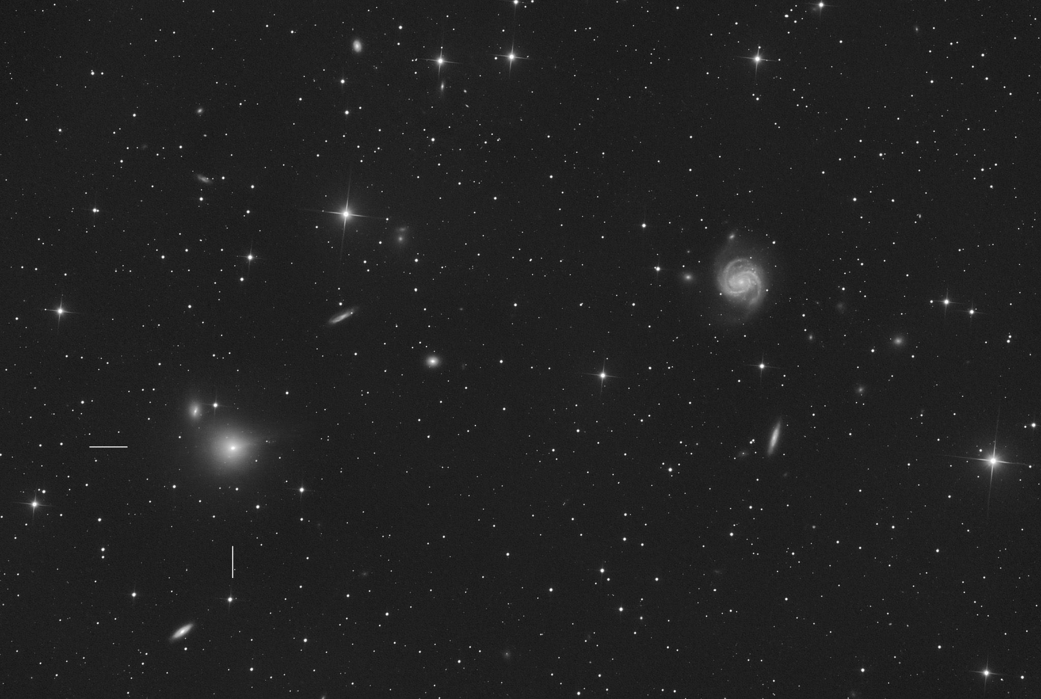 Komet 24P/Schaumasse und zahlreiche Galaxien . Die hellste davon Messier 100. 27.12.2025 1.00UT. Aufnahme mit 8" / 3.0 Newton und Touptek 2600 MP Luminanz 30 min. belichtet. Center (RA, Dec): (186.143, 15.648) Center (RA, hms): 12h 24m 34.335s Center (Dec, dms): +15° 38' 53.549" Size: 1.96 x 1.32 deg Radius: 1.181 deg Pixel scale: 3.45 arcsec/pixel "Orientation", may be incorrect, use at your own risk: Up is 353.3 degrees E of N |