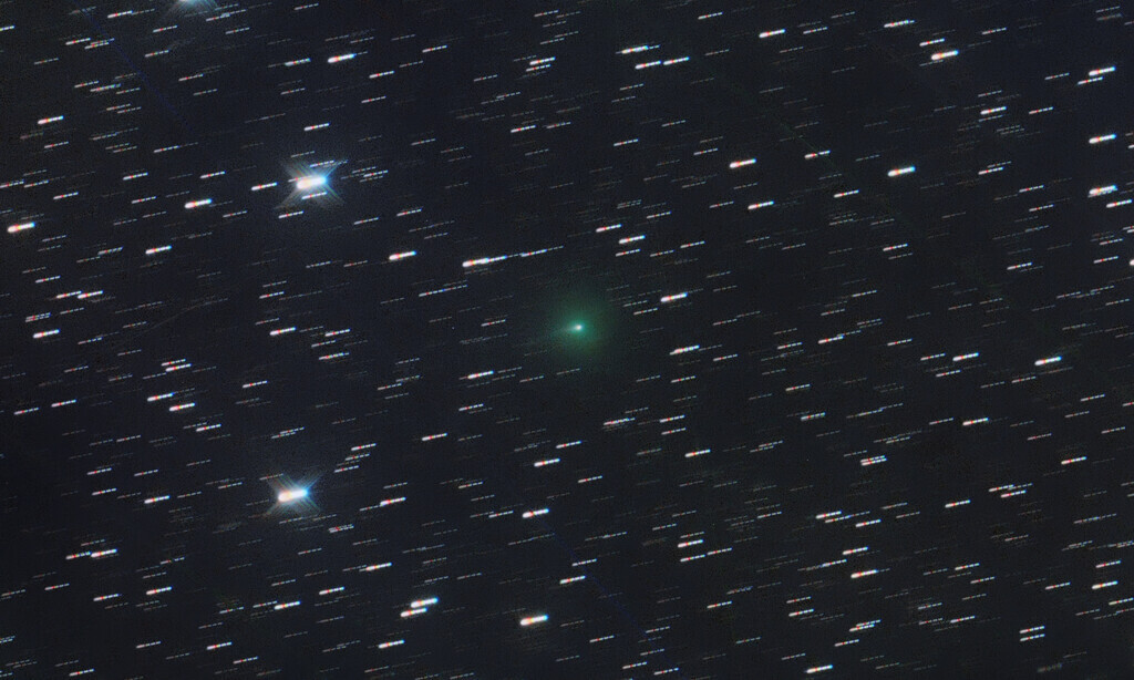 Images taken in Namibia on September 17 show the comet already at a brightness of 12m0 with a 5' coma and a 150" tail in pa 107. 3I/ATLAS 2025-09-17 UT 18.20 UT 20/9/9/9min 12"/3.6 Asi 6200 Farm Tivoli, Gerald Rhemann, Michael Jäger |