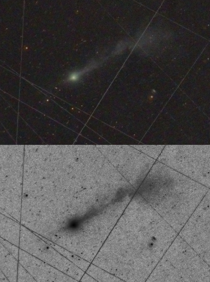 TEC 140 f/7 with AP 0.72x Quad Telecompressor f=5 ASI 6200MM; Baader filter L,R,G,B ASKAR 60/300 , QHY 367 C ASA DM 60 , Remote controlled ASI 5x180 S, QHY: 5x180s PixelSkiesAstro, Remote, Spain FoV of each panel 1.1 deg wide |