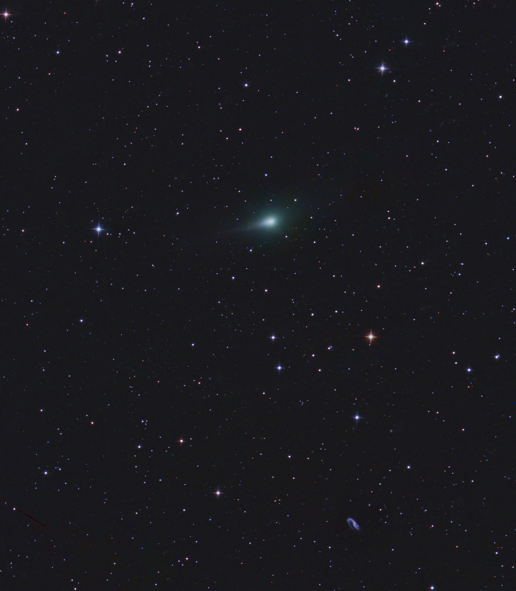 Comet 3I/ATLAS 15.12.2025 1.16 UT Recording with 10" / 3.0 Newton and Touptek 2600 MP LRGB 450/180/180/180 s. Center (RA, Dec): (166.324, 5.304) Center (RA, hms): 11h 05m 17.707s Center (Dec, dms): +05° 18' 12.974" Size: 1.09 x 1.25 deg Radius: 0.832 deg Pixel scale: 2.2 arcsec/pixel "Orientation", may be incorrect, use at your own risk: Up is 357.7 degrees E of N |