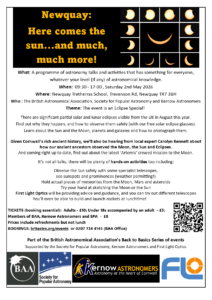 | 10:45 | Observing the Sun | Nigel Price, Kernow Astronomers |