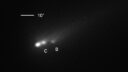 Nick JamesParticipantRobin. Yes. There are three components now. Attached is an image I processed from yesterday using data obtained by the Comet Chasers group. Component C is quite bright and would merge with the main component if seeing or resolution is poor. As of yesterday morning it was around 4 arcsec from the main component.