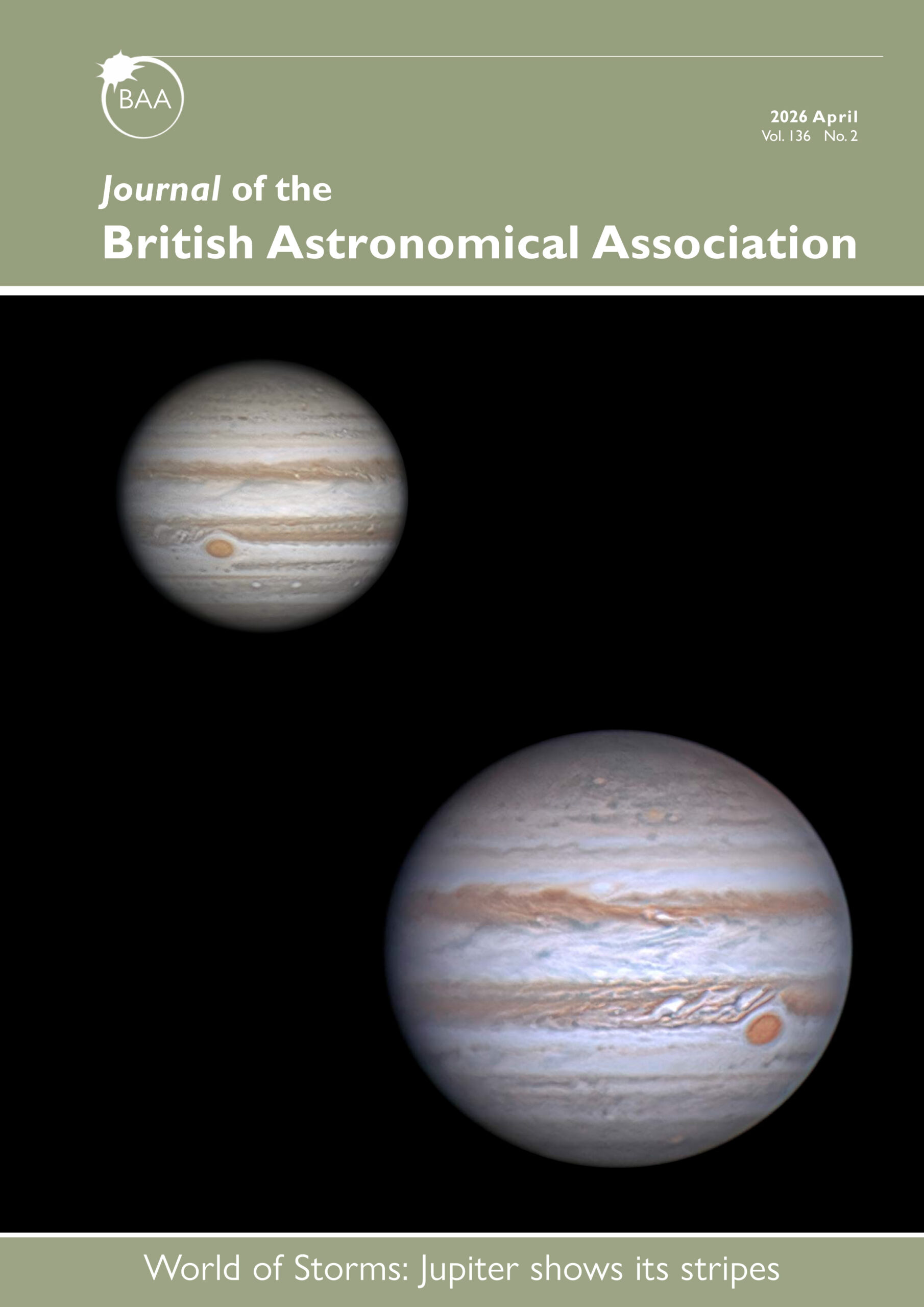 For 130 years the Journal has published the observations and work of BAA members. It also contains many other articles and items of interest to all amateur astronomers. It is published six times a year, and sent free to all standard members of the Association. You can download a sample copy.