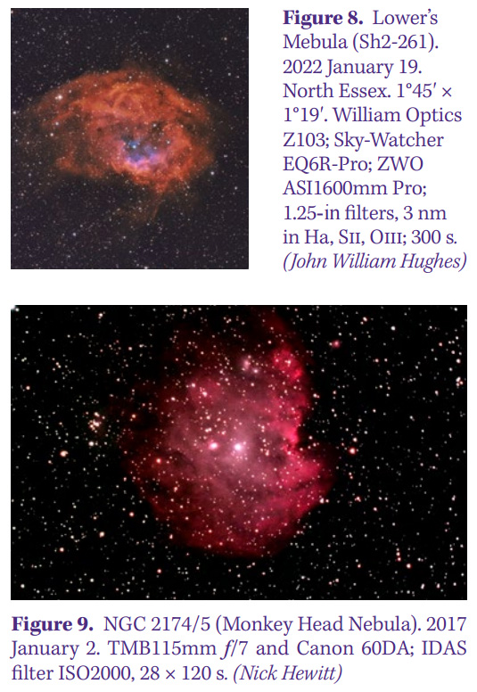 Another Sharpless entry can be found further north: Lower’s Nebula (Sh2-261; Figure 8), an emission nebula in northern Orion that is attracting increasing interest. Discovered in 1939 by father-and-son team Harold and Charles Lower, it has a low surface brightness but reveals impressive detail in narrowband images. Roughly twice the distance of Messier 42, it is illuminated by the high-velocity O-type star HD41997.