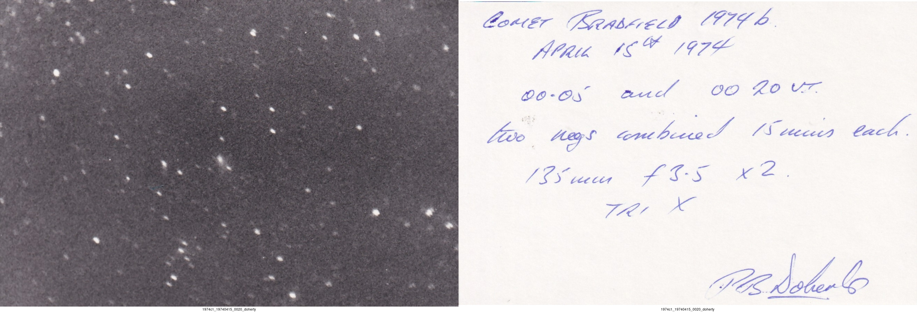 Observation by doherty: C/1974 C1 Bradfield, observed by doherty