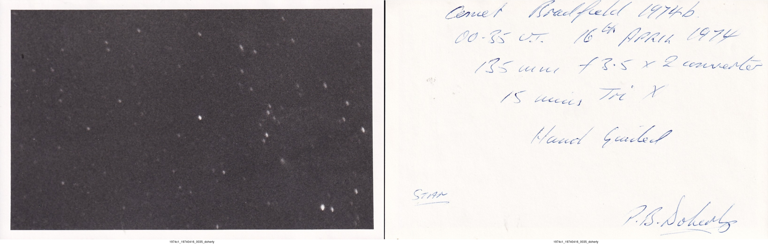 Observation by doherty: C/1974 C1 Bradfield, observed by doherty
