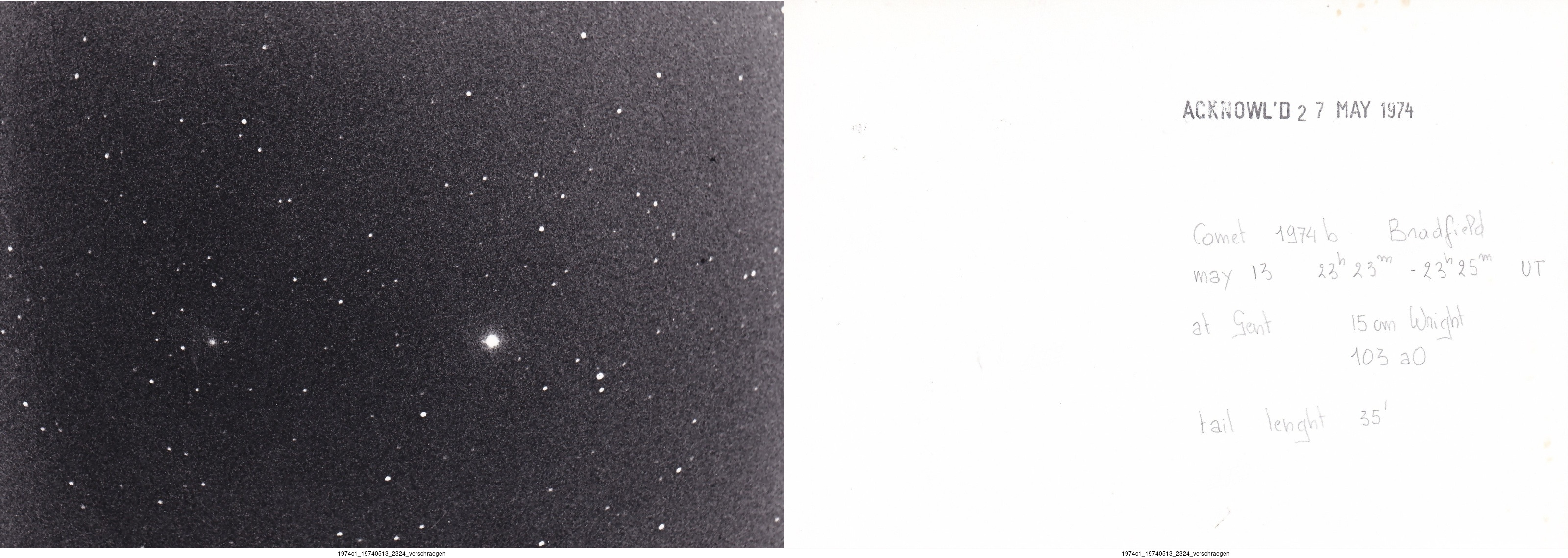 Observation by verschraegen: C/1974 C1 Bradfield, observed by verschr...
