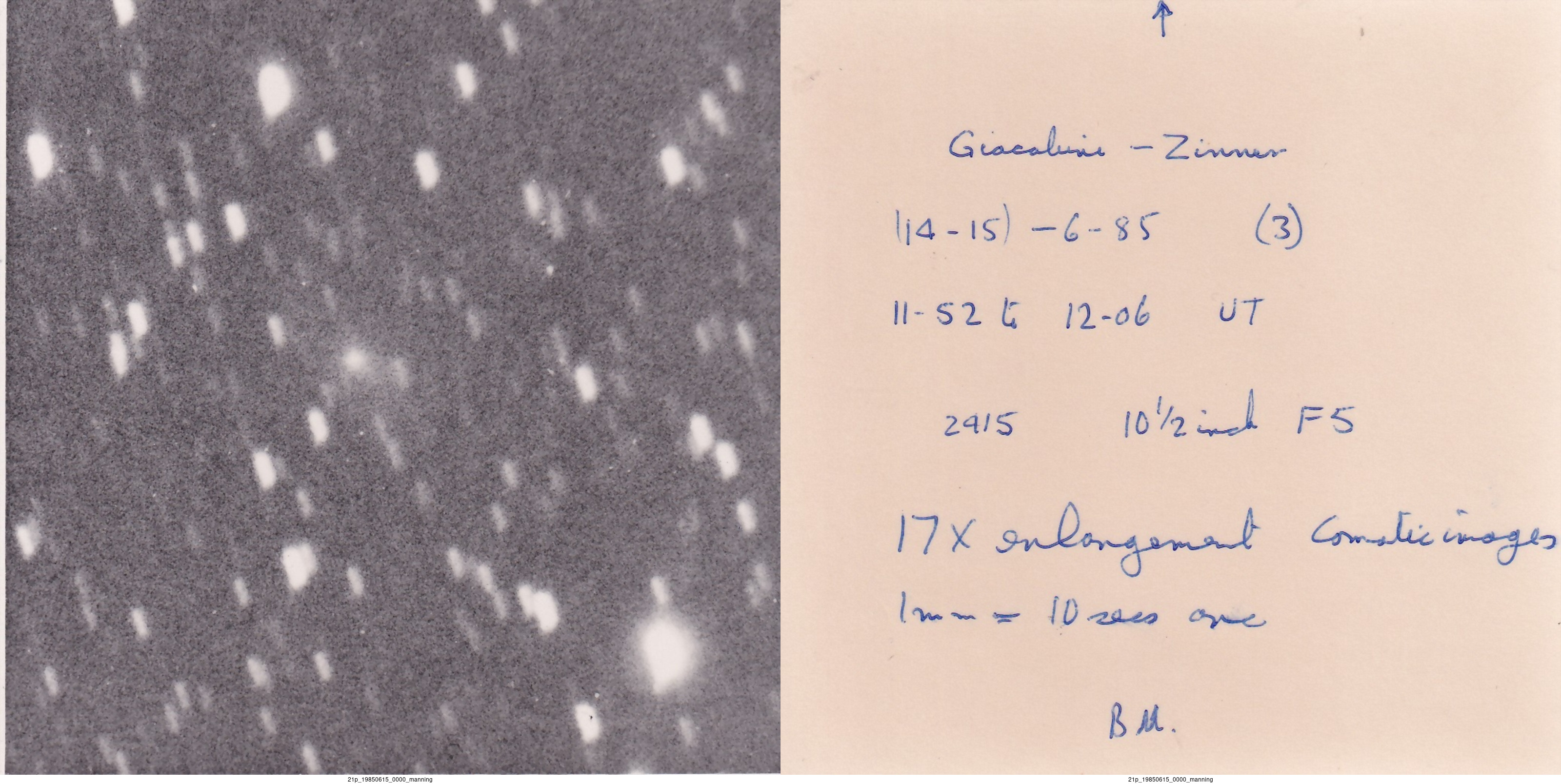Observation by Brian Manning: 21P Giacobini-Zinner, observed by Brian ...
