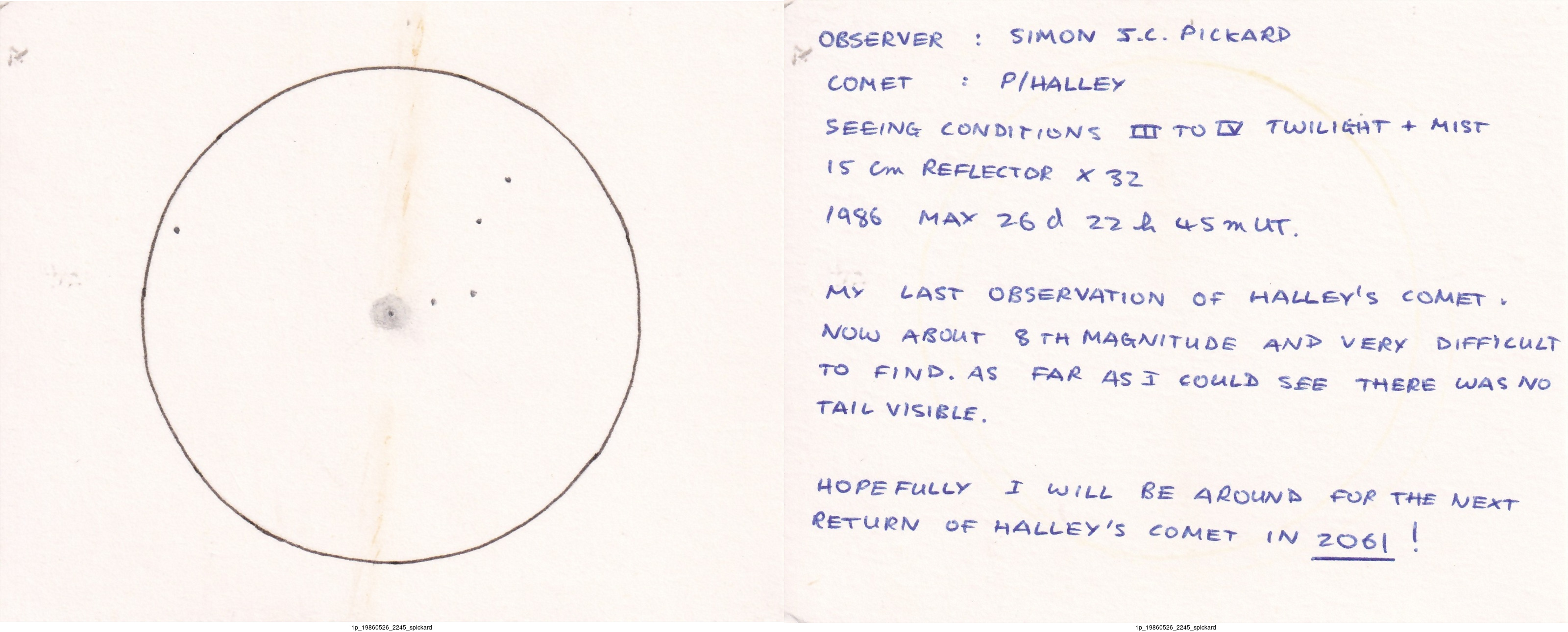 Observation by spickard: 1P Halley, observed by spickard