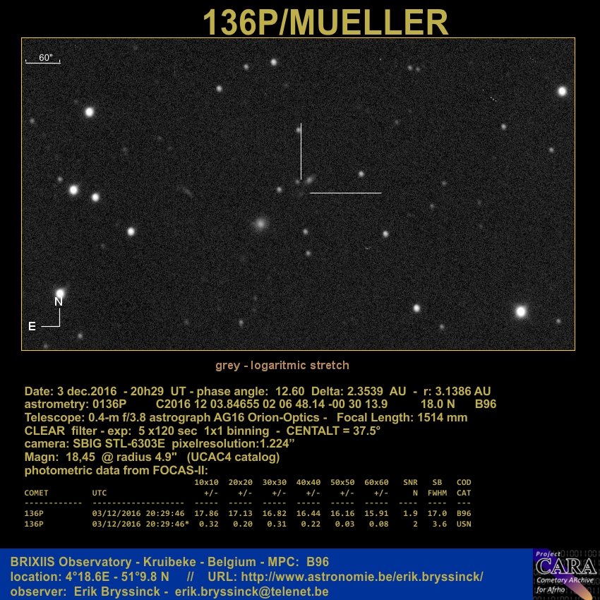 Observation by Erik Bryssinck: 136P Mueller, observed by Erik Bryssinck