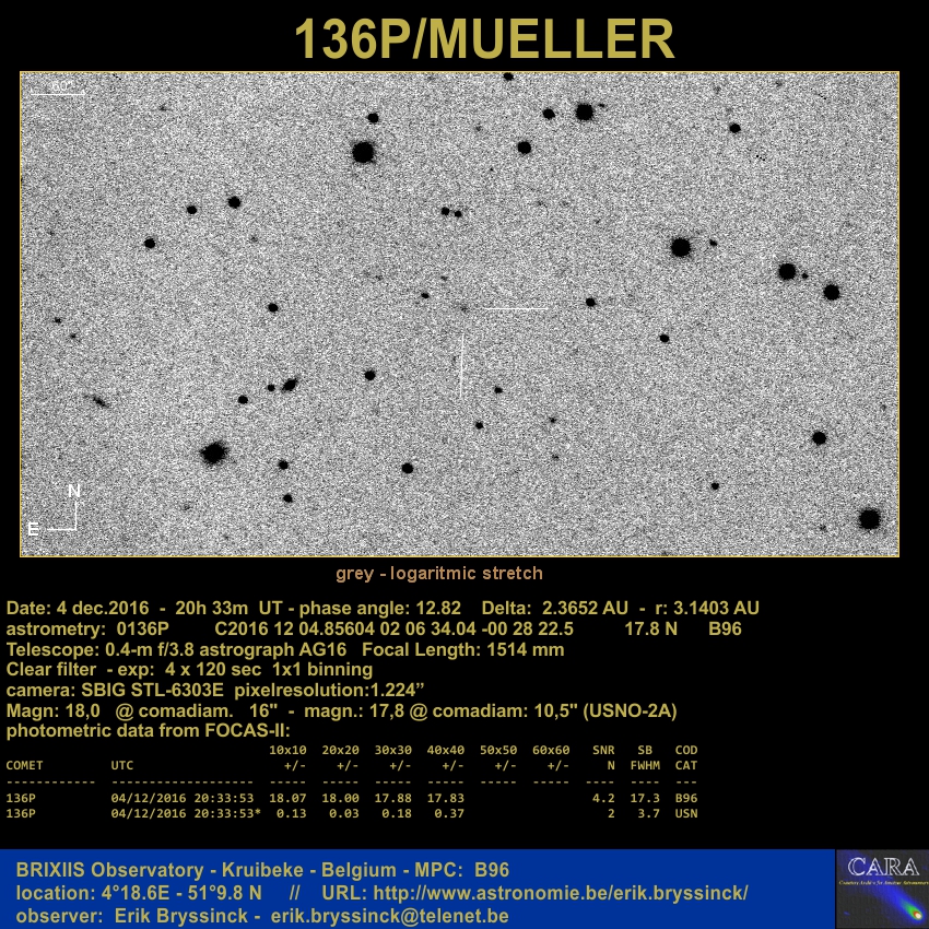 Observation by Erik Bryssinck: 136P Mueller, observed by Erik Bryssinck
