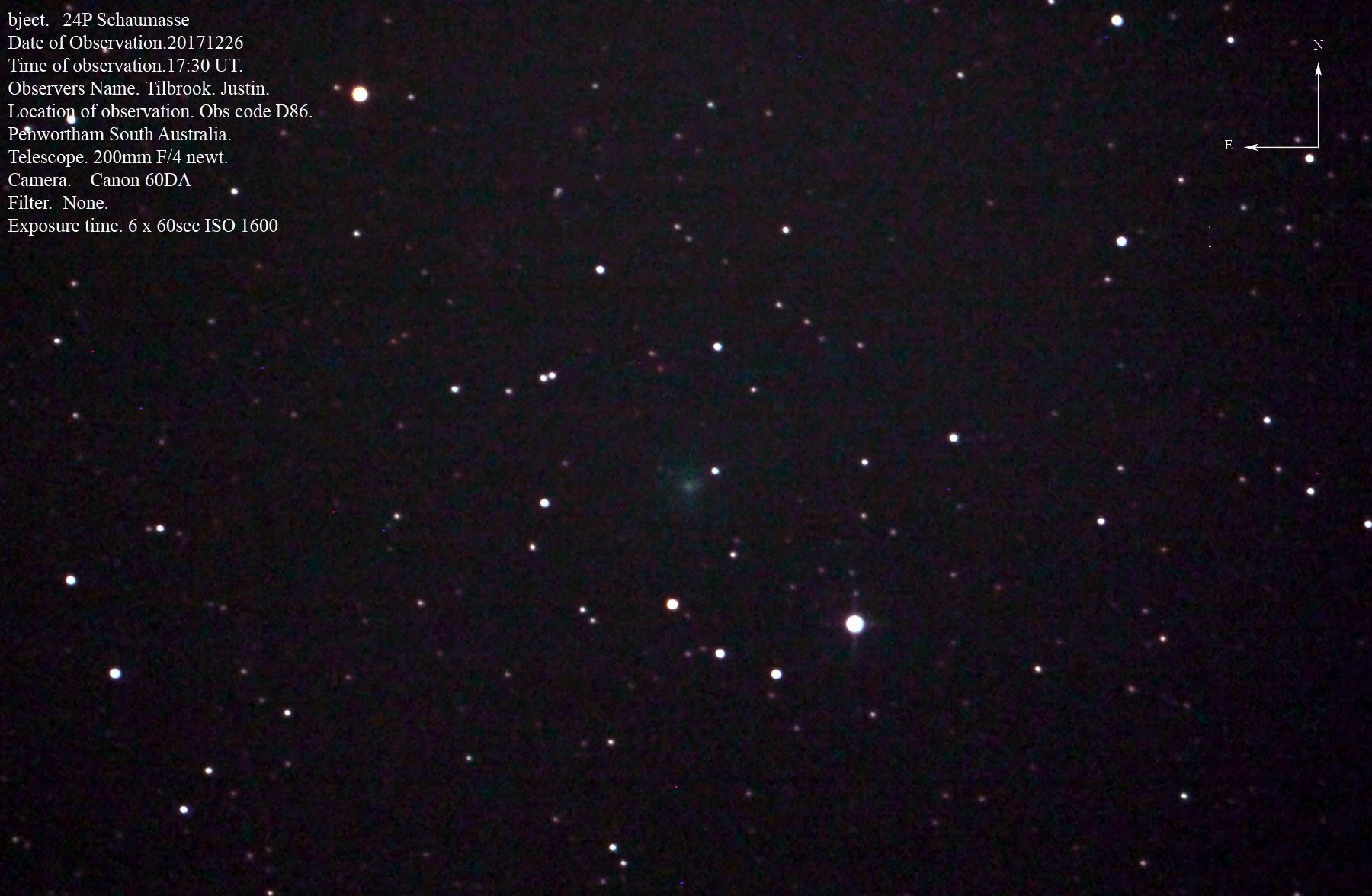 Observation by Justin Tilbrook: 24P Schaumasse, observed by Justin Tilbr...