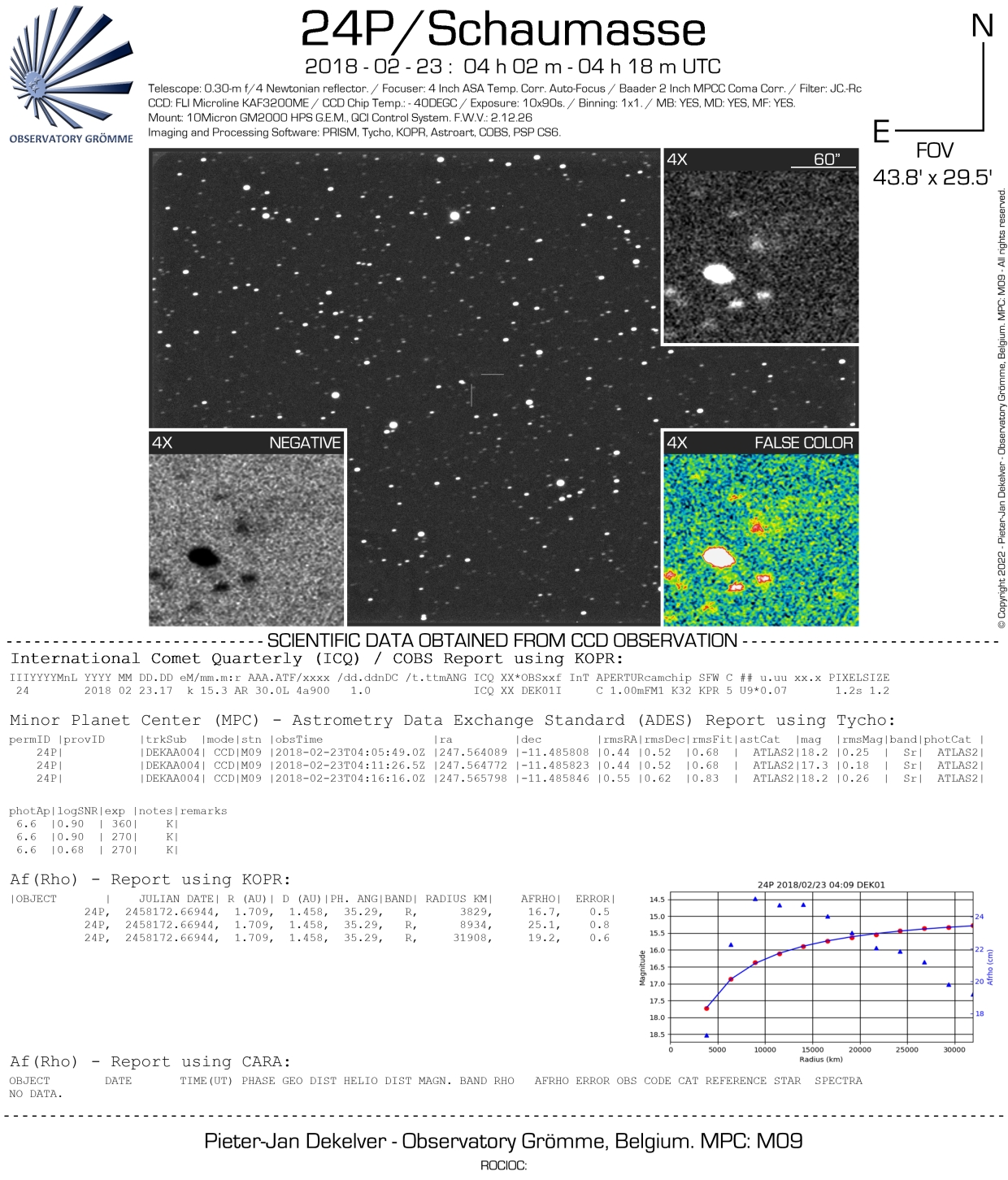 Observation by PJDekelver: 24P Schaumasse, observed by PJDekelver