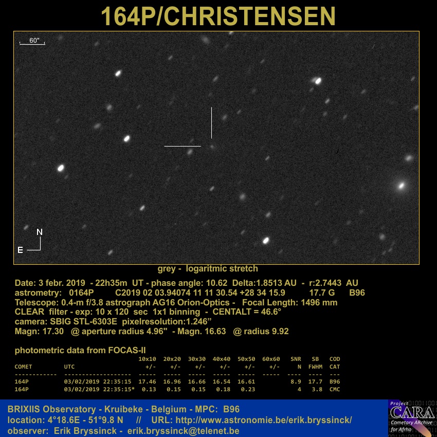 Observation by Erik Bryssinck: 164P Christensen, observed by Erik Bryss...