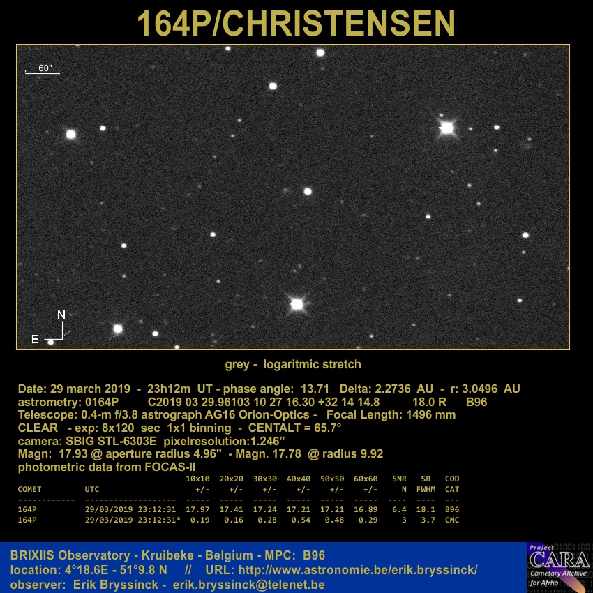 Observation by Erik Bryssinck: 164P Christensen, observed by Erik Bryss...