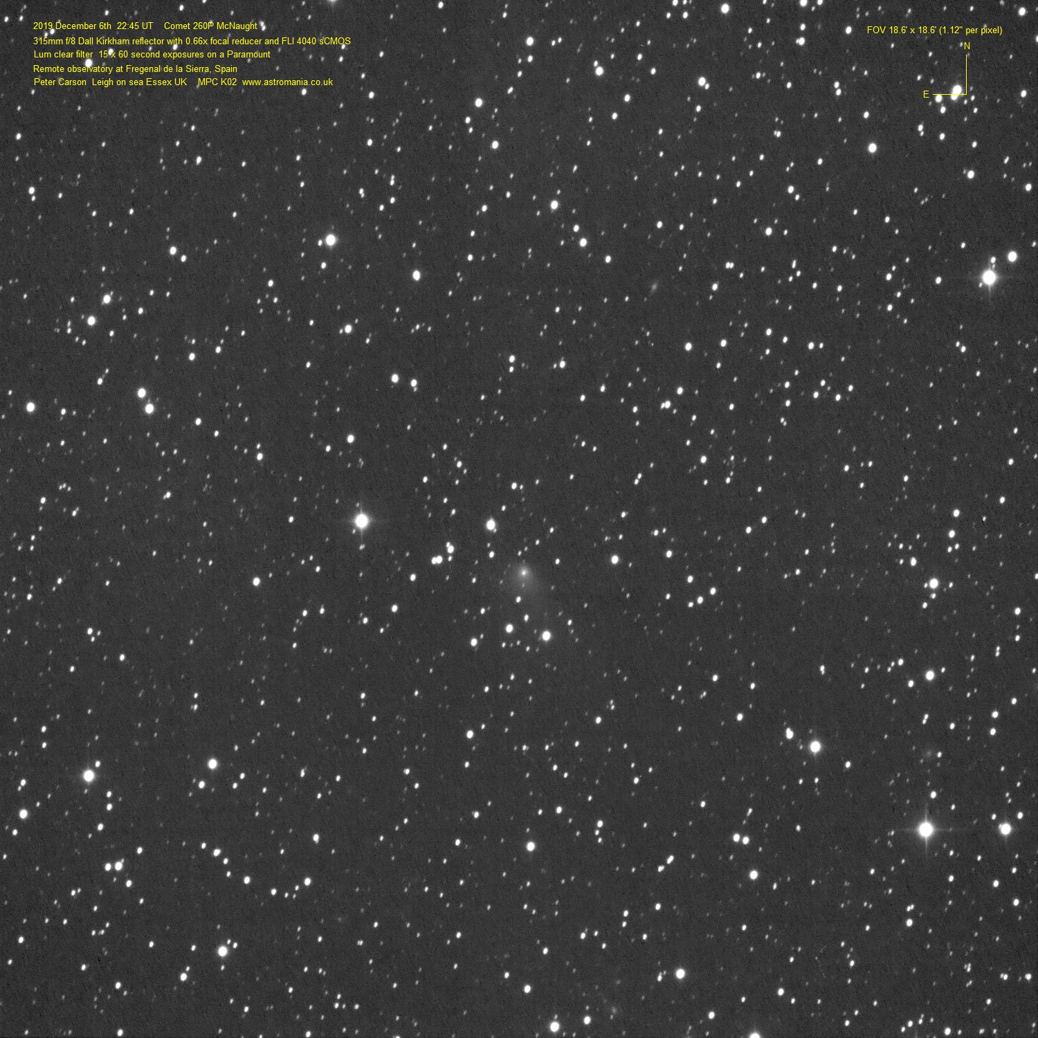Observation by Peter Carson: 260P McNaught, observed by Peter Carson