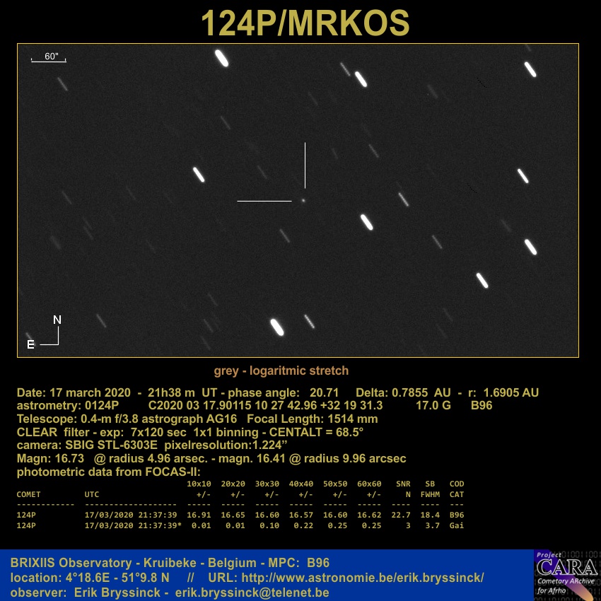Observation by Erik Bryssinck: 124P Mrkos, observed by Erik Bryssinck