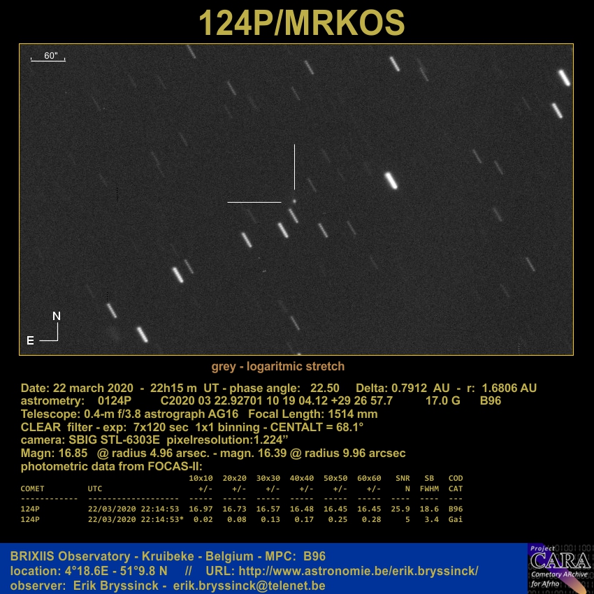 Observation by Erik Bryssinck: 124P Mrkos, observed by Erik Bryssinck