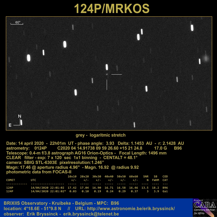 Observation by Erik Bryssinck: 124P Mrkos, observed by Erik Bryssinck
