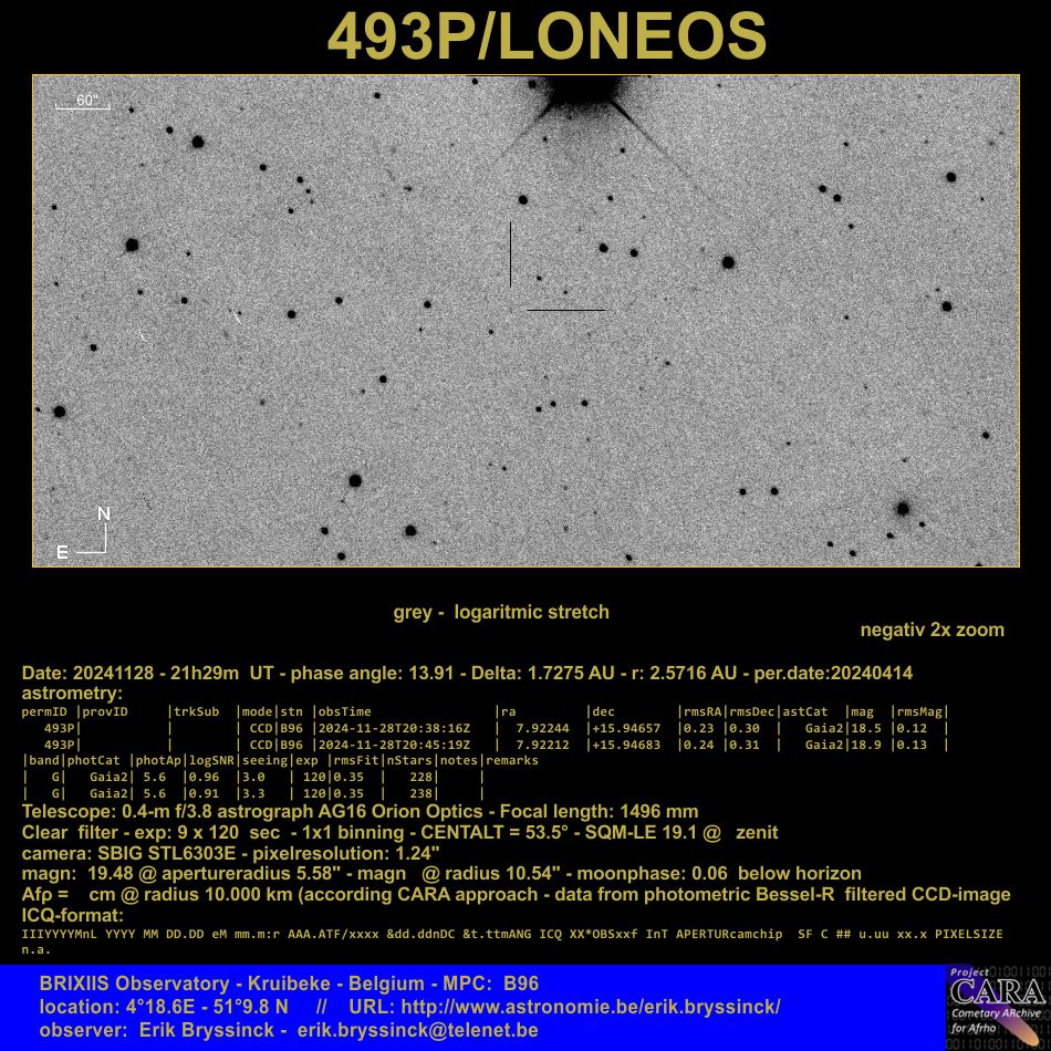 Observation by Erik Bryssinck: 0493P, observed by Erik Bryssinck