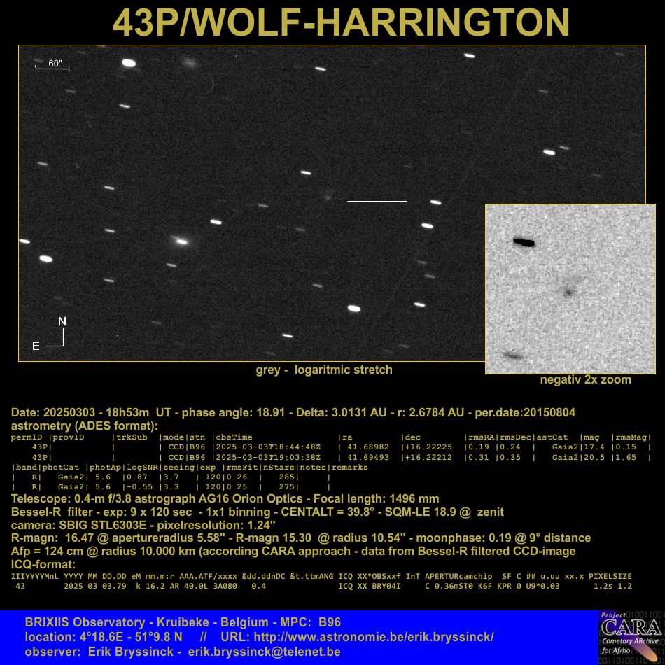 Observation by Erik Bryssinck: 43P Wolf-Harrington, observed by Erik Br...