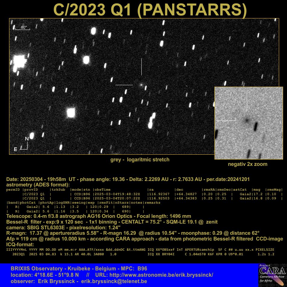 Observation by Erik Bryssinck: C/2023 Q1 (PANSTARRS), observed by Erik ...