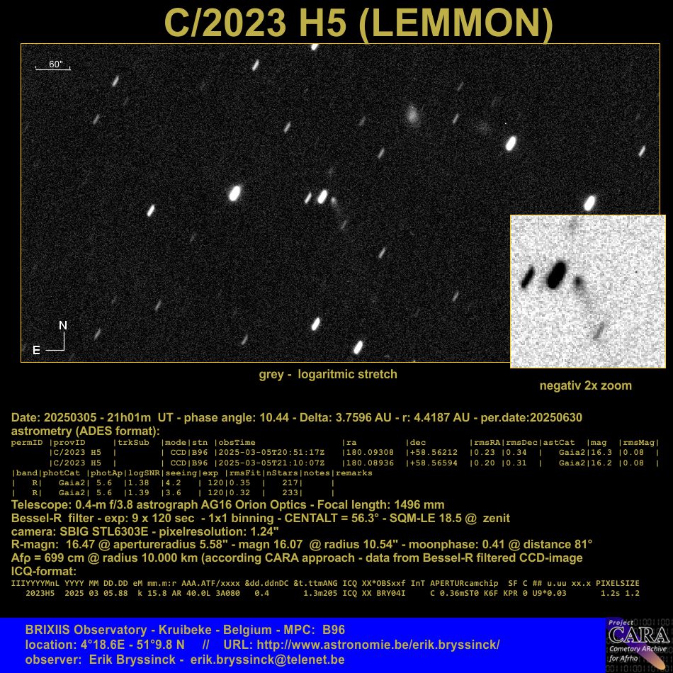 Observation by Erik Bryssinck: C/2023 H5 (Lemmon), observed by Erik Bry...