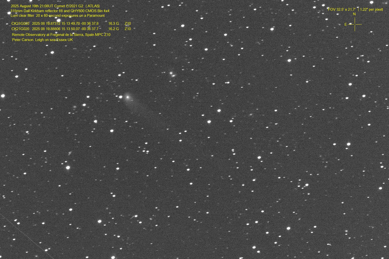 Observation by Peter Carson: C/2021 G2 (ATLAS), observed by Peter Car...