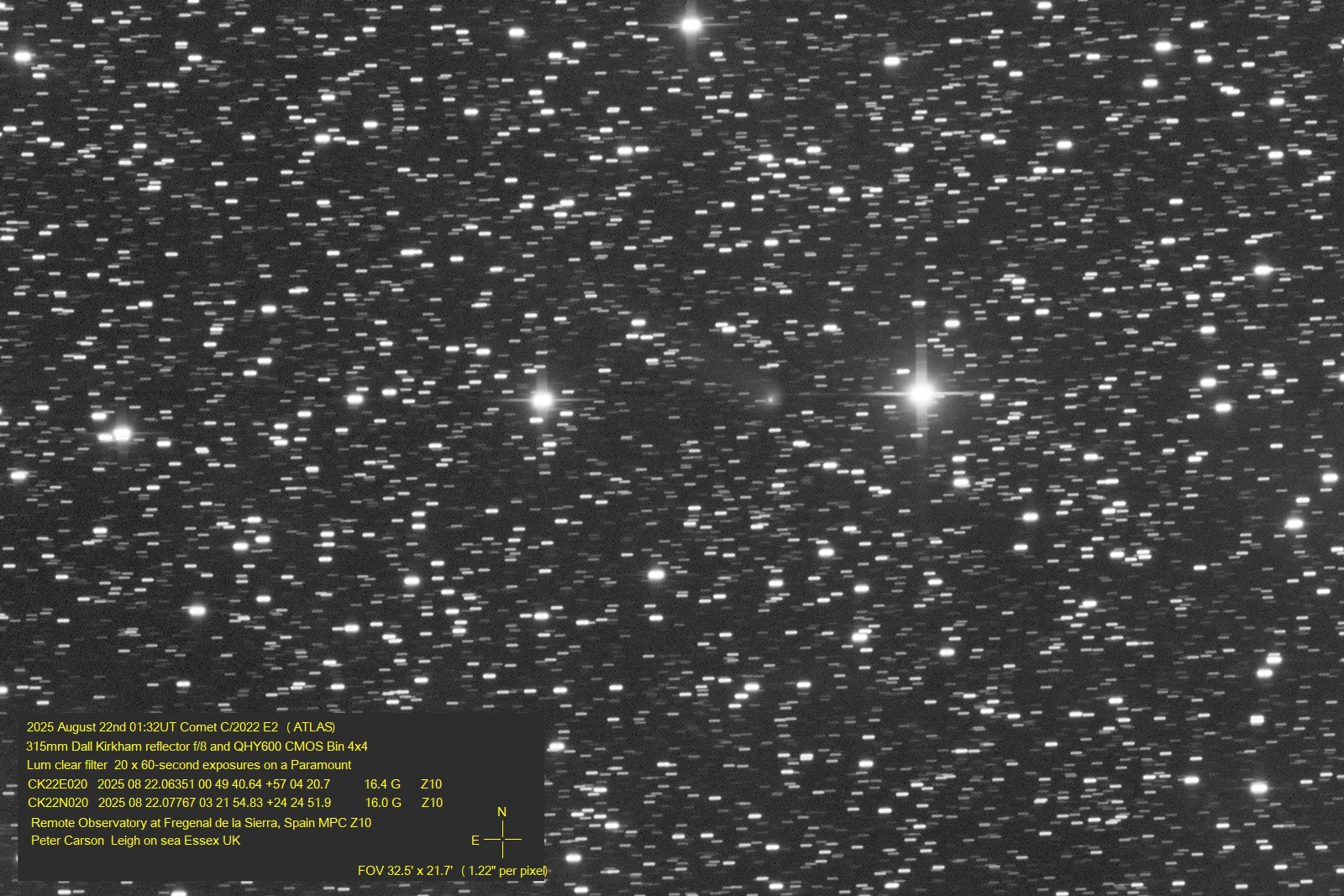 Observation by Peter Carson: C/2022 E2 (ATLAS), observed by Peter Car...