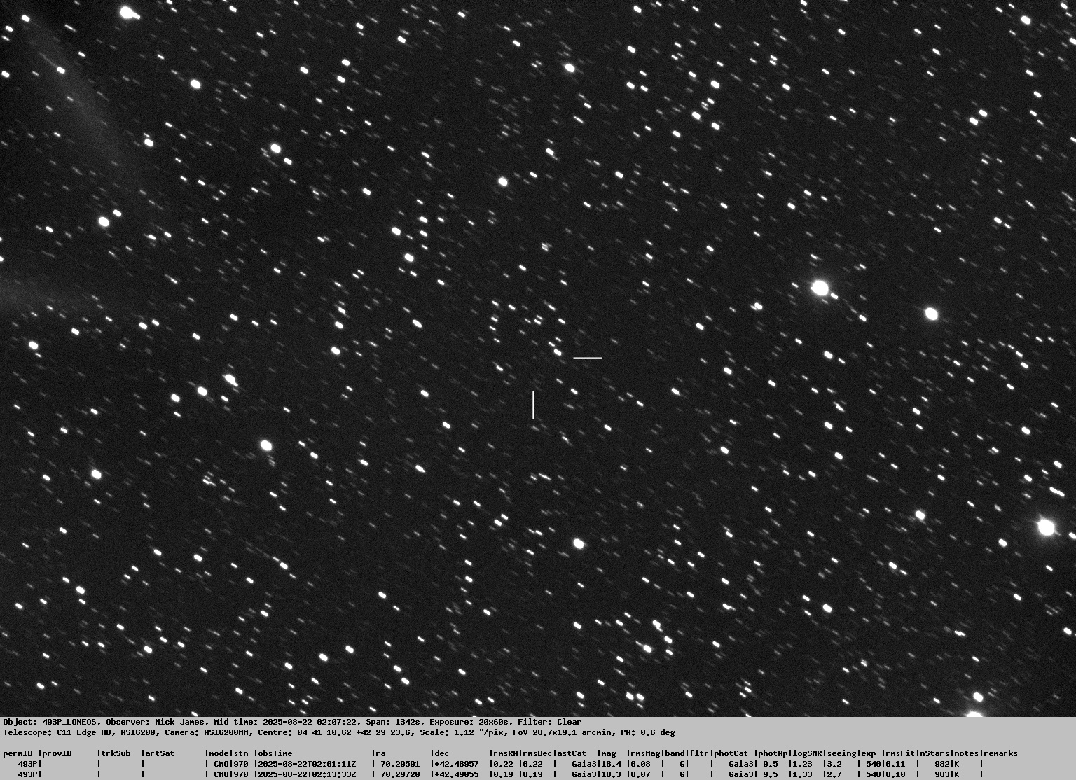 Observation by Nick James: 0493P, observed by Nick James