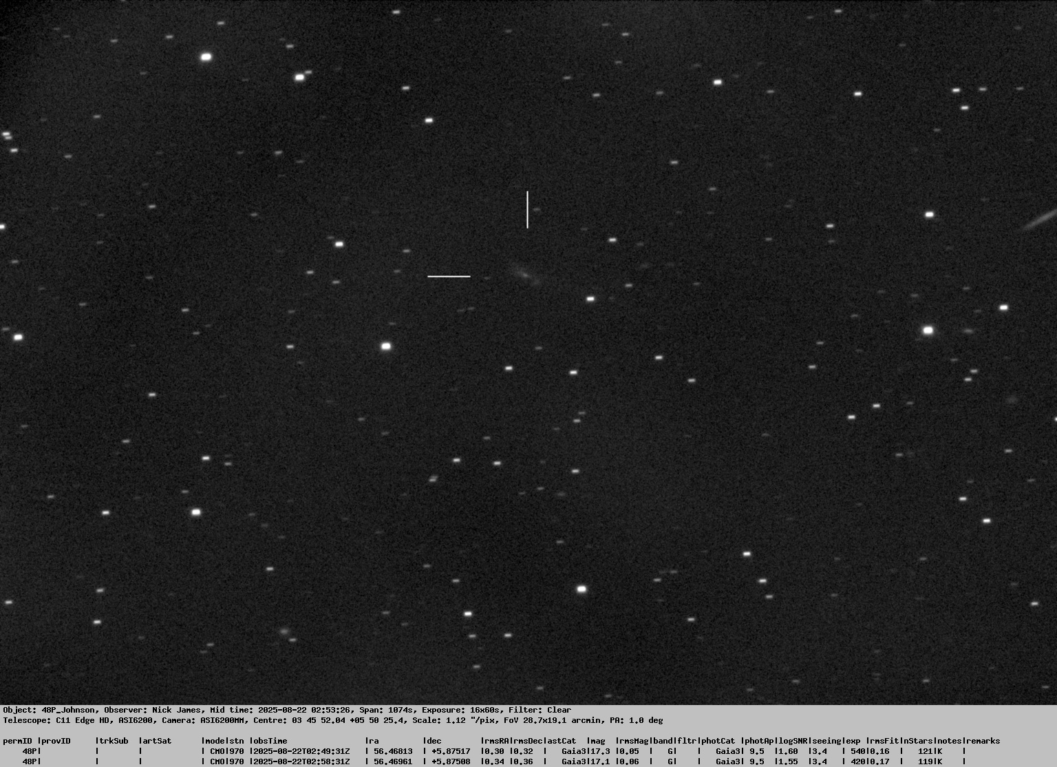 Observation by Nick James: 48P Johnson, observed by Nick James