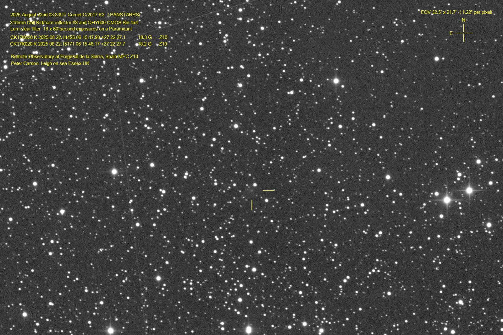 Observation by Peter Carson: C/2017 K2 (PANSTARRS), observed by Peter...