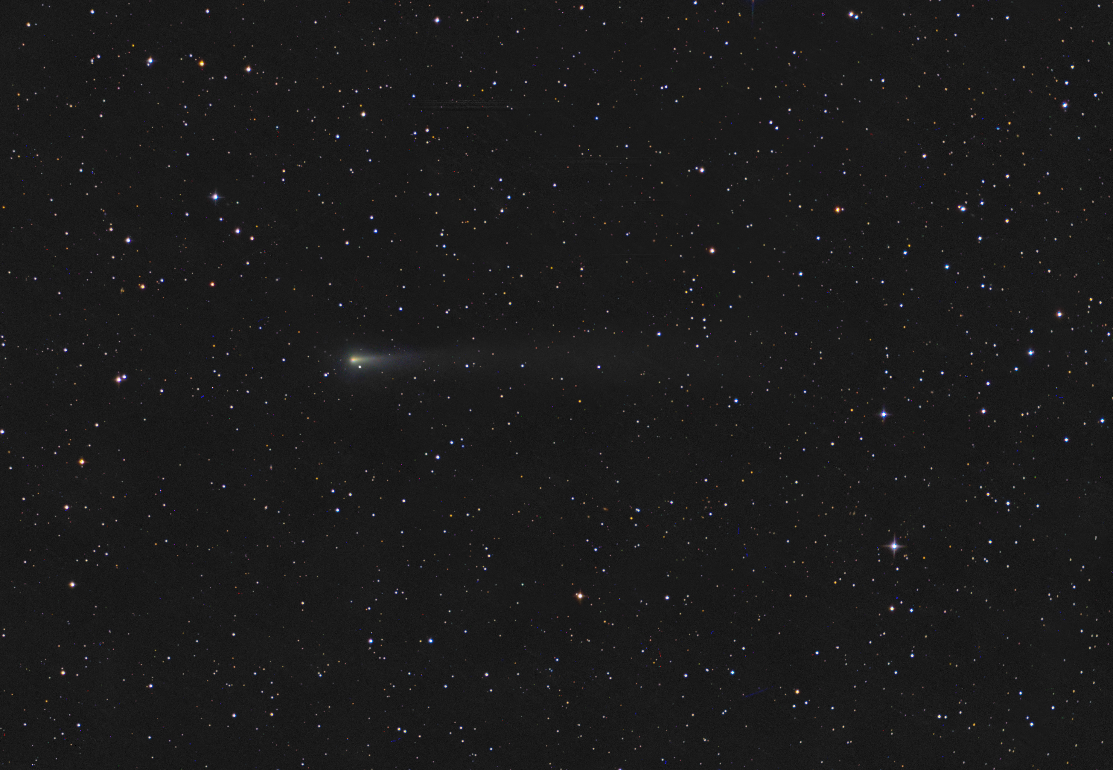 Comet C/2025 K1 Atlas, Aug 30 starting at 8:25pm MST (3:25 UT Aug 31), 10" f/3.9 Newt, LRGB = 30 mins total, Atik 16200 CCD, Payson, Az Well into the bright moonlight, low surface brightness tail Field here is about 1.5 degrees wide