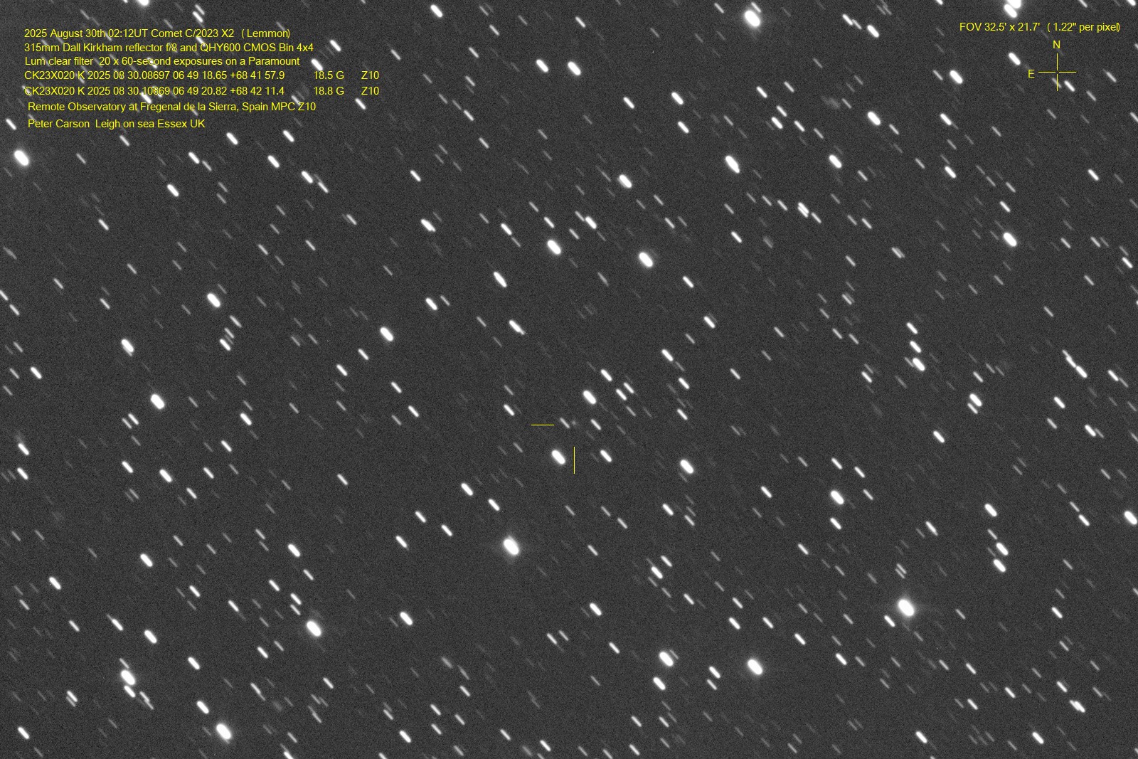 C/2023 X2 (Lemmon), observed by Peter Carson