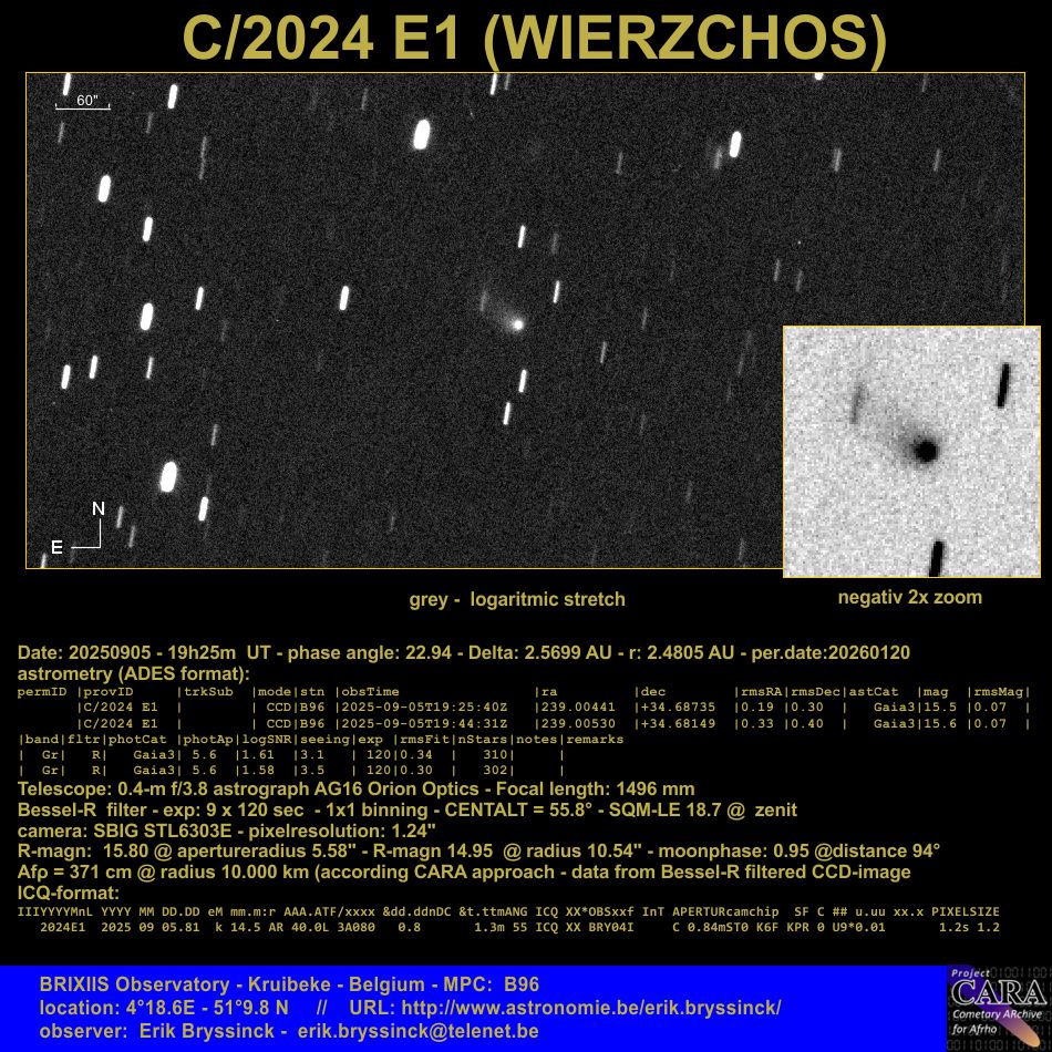Observation by Erik Bryssinck: C/2024 E1 (Wierzchos), observed by Erik ...